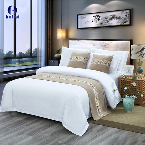 قطن خالص فاخر 300TC 60S ملاءة مقاس كوين 4 قطع للفنادق والمنتجعات تشمل لحاف أبيض